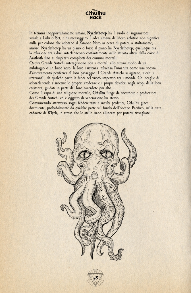 The Cthulhu Hack è un gioco di ruolo di investigazione che metterà a confronto delle persone ordinarie contro i mostri e le divinità create dalla mente del “Solitario di Providence” H.P. Lovecraft, utilizzando il sistema di regole “old school” di The Black Hack.